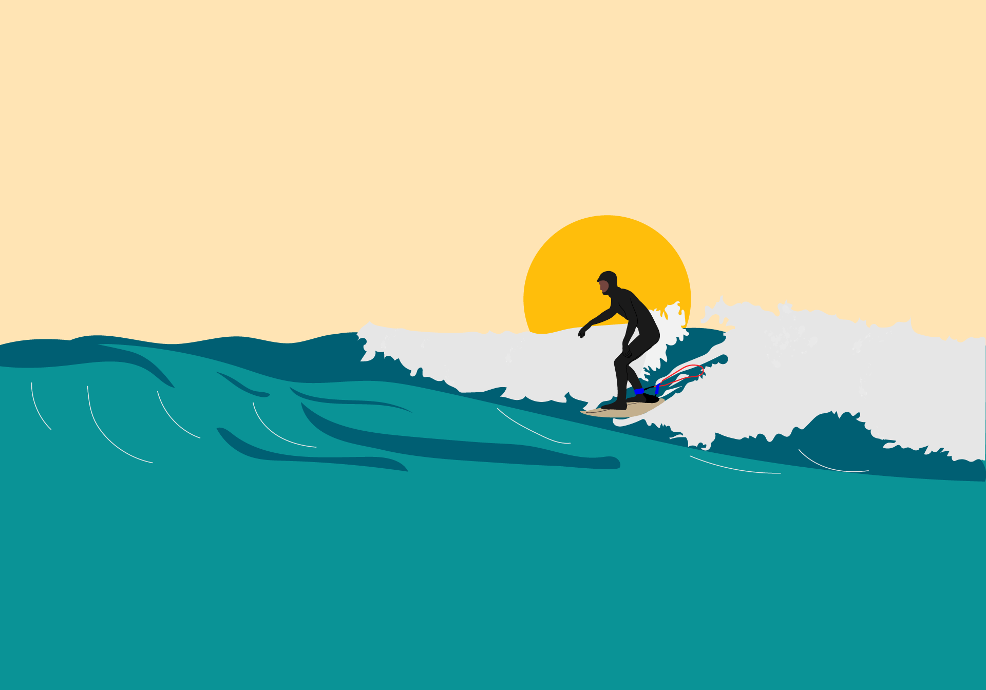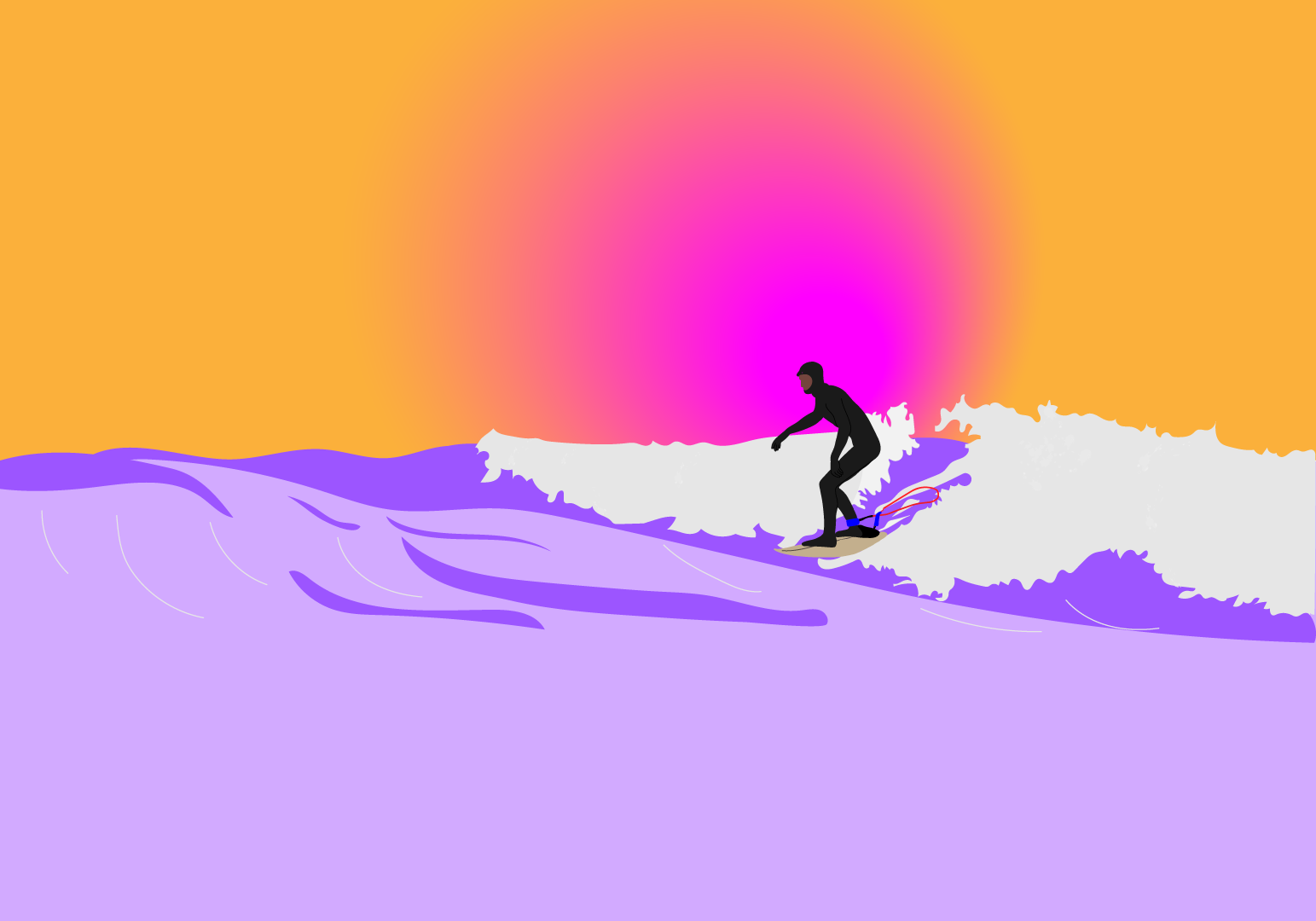 Projet personnel, dessin d'un surfeur, Illustrator, 2022.